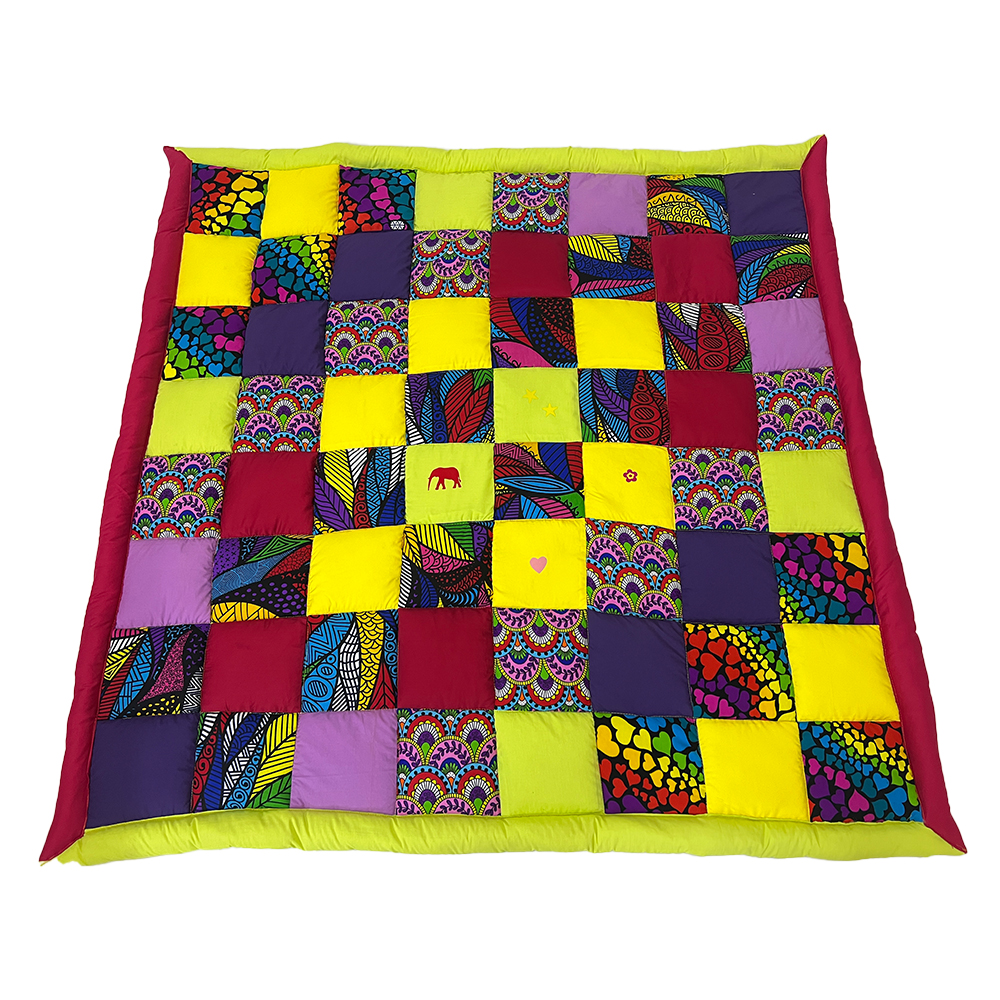 Medium handmade playmat, luxuriously padded, using only high-quality cotton material in African prints, each piece is an original with no design ever being duplicated. Size is 120cmx120cm.